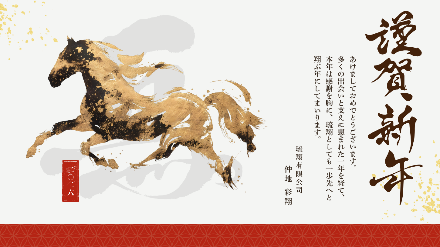 旧年中は、多くの皆さまに支えられ、琉翔としてさまざまなご縁を重ねる一年となりました。日頃よりお力添えをいただいている皆さまに、心より御礼申し上げます。
